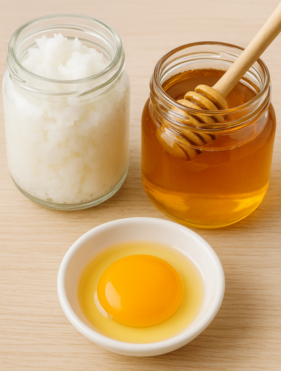 코코넛오일 2큰술, 꿀 1큰술, 달걀 노른자 1개