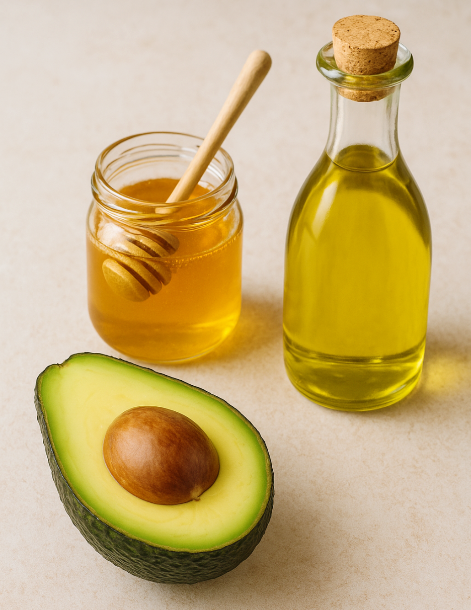 잘 익은 아보카도 1/2개, 꿀 1큰술, 올리브유 1큰술
