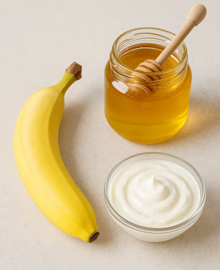 바나나 1/2개, 꿀 1큰술, 요거트 1큰술