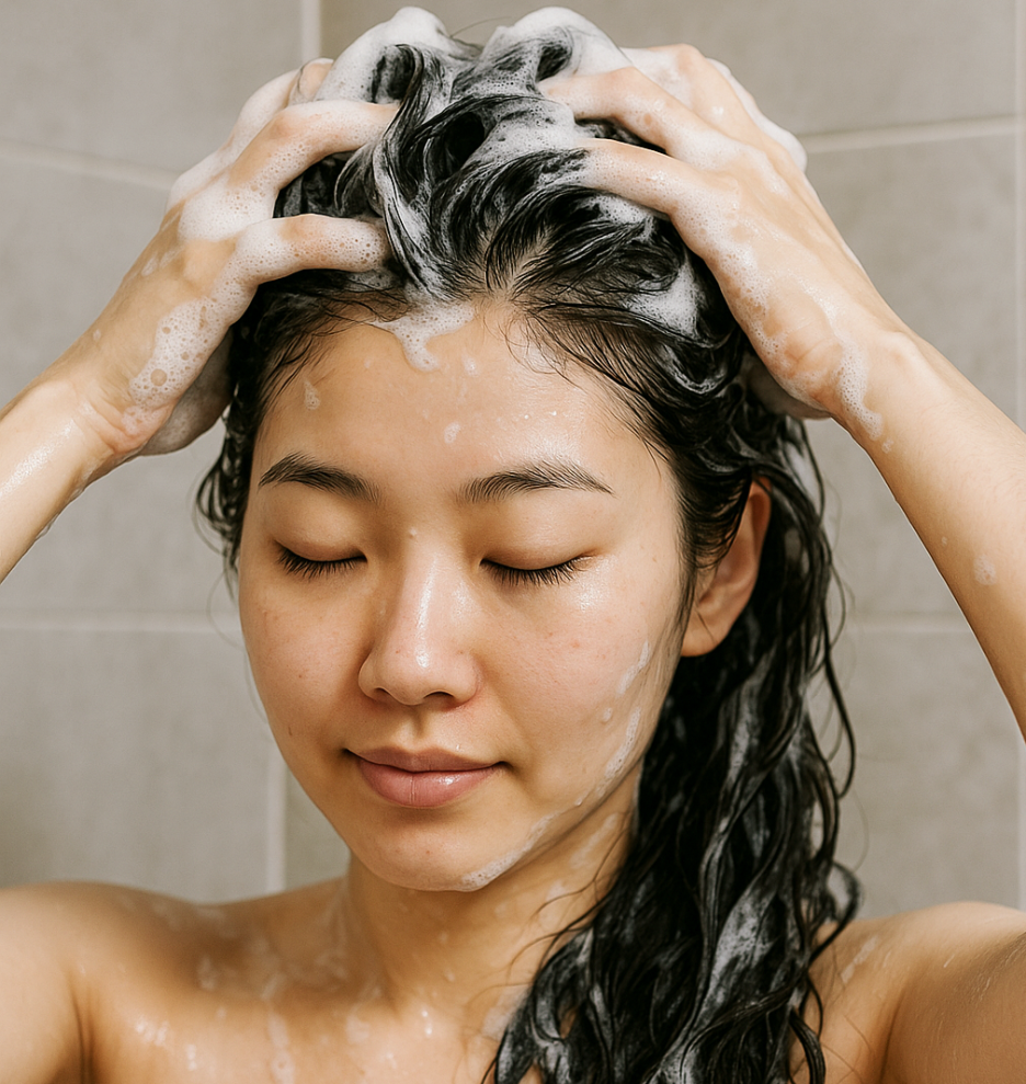 4.미온수로 헹군 뒤 평소처럼 샴푸해 주면 돼요.